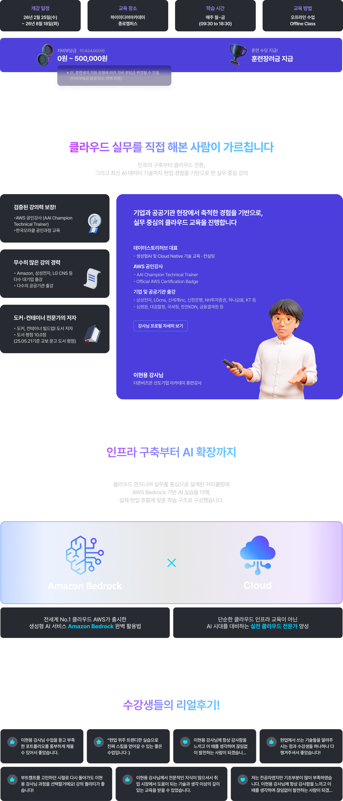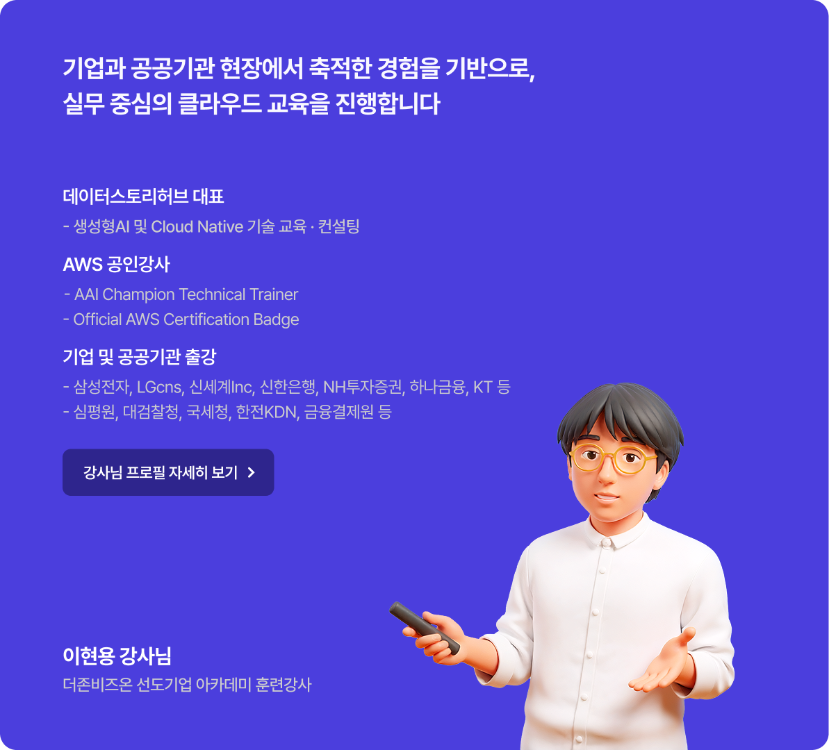 기업의 클라우드 전환이 가속화되면서 퍼블릭 클라우드(AWS, Azure, GCP)에 대한 실무 역량은 필수가 되었습니다. 그중에서도 AWS는 전 세계에서 가장 널리 쓰이는 대표 클라우드 플랫폼으로, 개발자부터인프라 운영자까지 모든 IT 인재에게 핵심 역량입니다. 보안, 네트워크, 컴퓨팅, 스토리지, 자동화, 서버리스, 엣지 서비스까지, 클라우드 운영 전반을 학습할 수 있습니다.